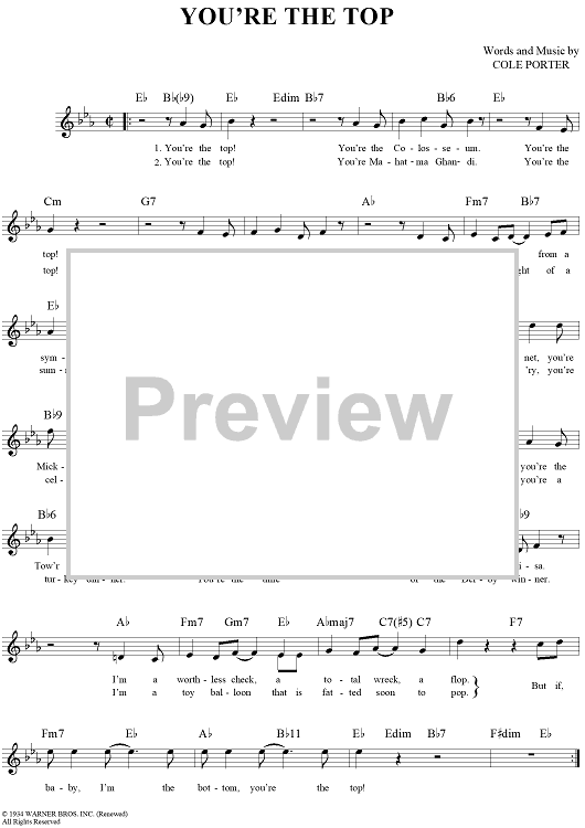 Digital Sheet Music for You're the Top by Cole Porter scored for Lead Sheet; id:95109