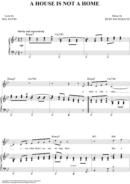 "A House Is Not A Home" Sheet Music by Burt Bacharach