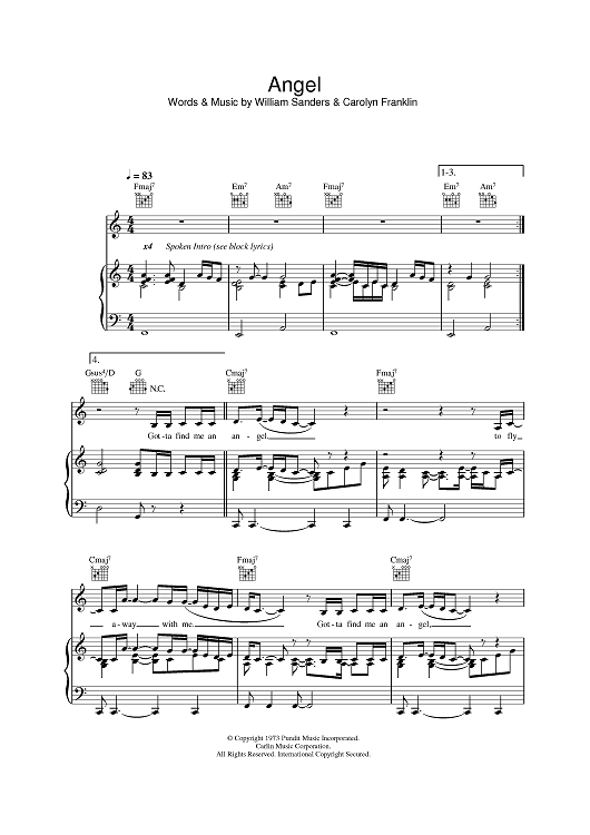 Digital Sheet Music for Angel by Carolyn Franklin, William Sanders, Aretha Franklin scored for Piano/Vocal/Chords; id:388350