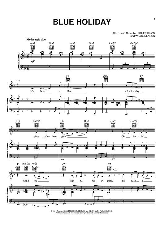 Digital Sheet Music for Blue Holiday by Luther Dixon, Willie Denson, Aretha Franklin scored for Piano/Vocal/Chords; id:371944