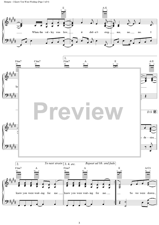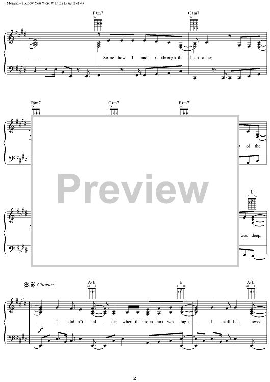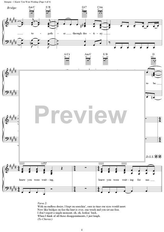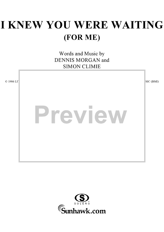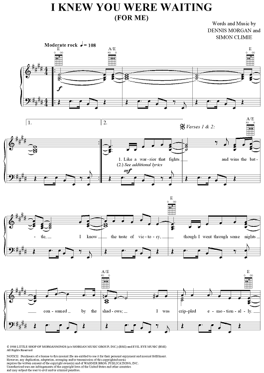 Digital Sheet Music for I Knew You Were Waiting (For Me) by George Michael, Simon Climie, Dennis Morgan, Aretha Franklin scored for Piano/Vocal/Chords; id:252508