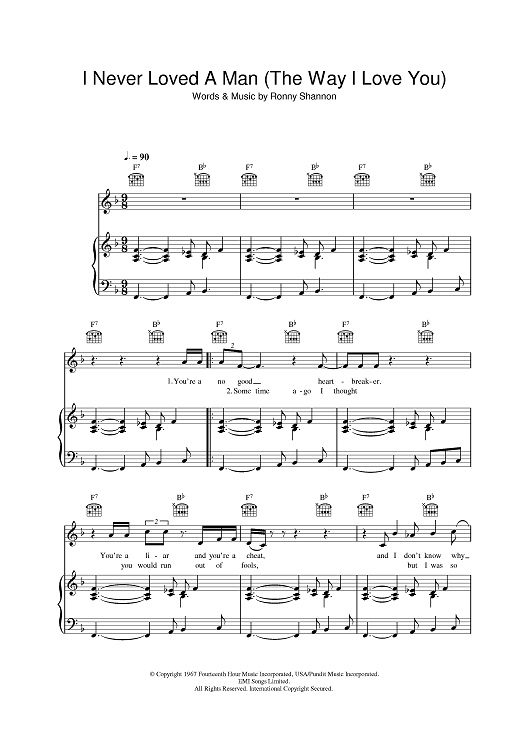 Digital Sheet Music for I Never Loved A Man (The Way I Love You) by Ronny Shannon, Aretha Franklin scored for Piano/Vocal/Chords; id:384048