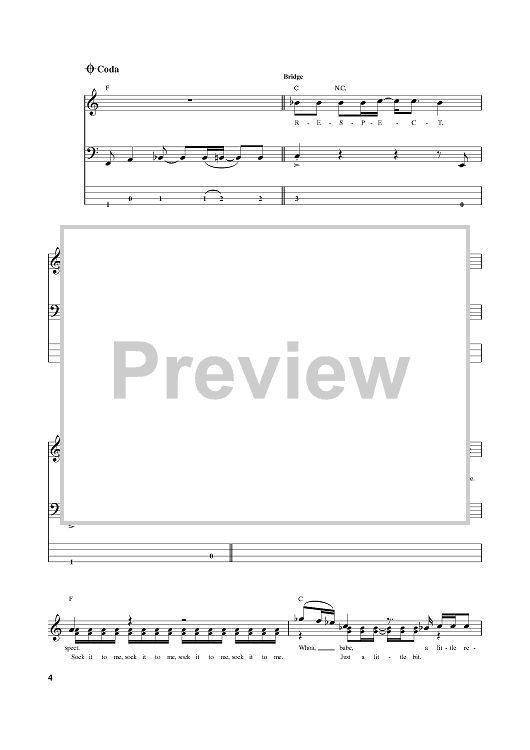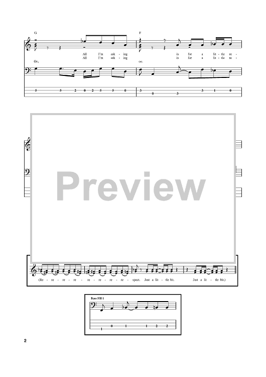 Digital Sheet Music for Respect by Otis Redding, Aretha Franklin scored for Bass Tab; id:384112