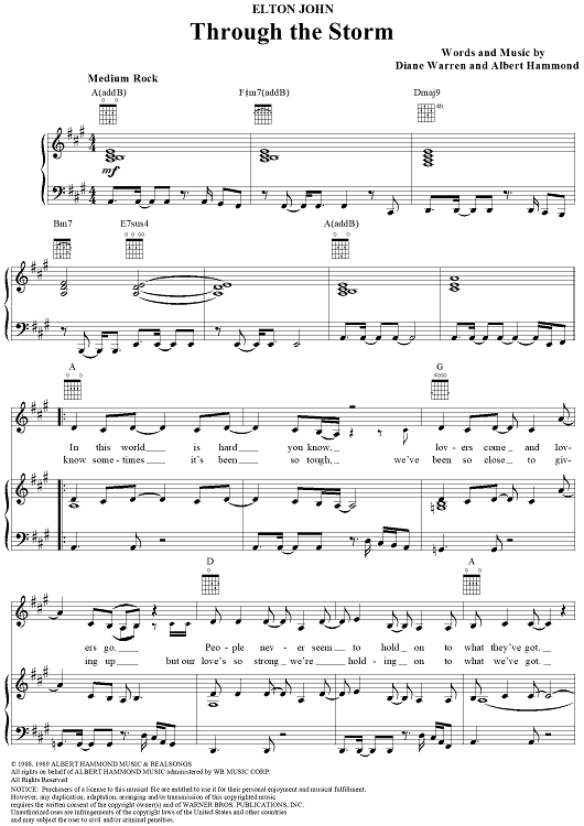 Digital Sheet Music for Through the Storm by Diane Warren, Albert Hammond, Elton John, Aretha Franklin scored for Piano/Vocal/Chords; id:111560