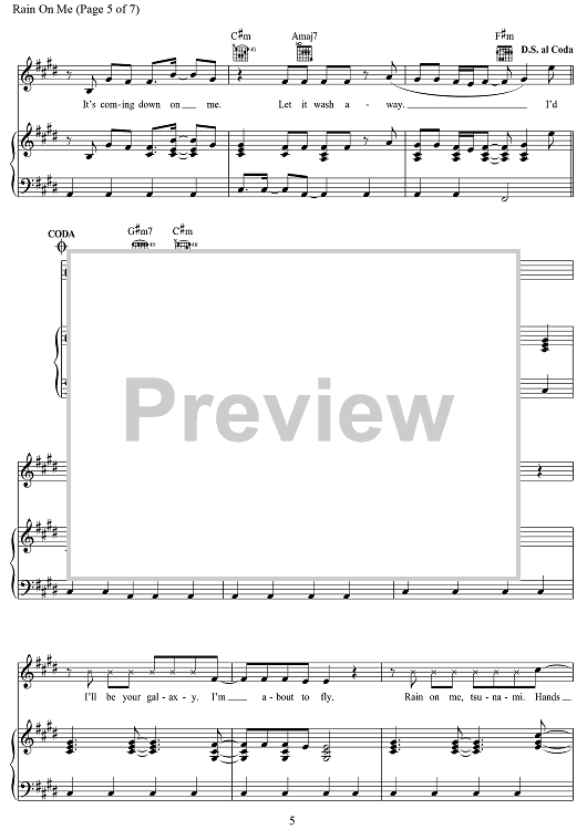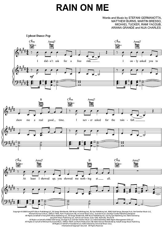 Digital Sheet Music for Rain On Me by Rami Yacoub, Stefani Germanotta, Lady Gaga, Ariana Grande, Martin Bresso, Michael Tucker, Matthew Burns, Nija Charles scored for Piano/Vocal/Chords; id:469086