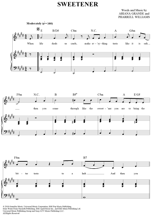 Digital Sheet Music for Sweetener by Pharrell Williams, Ariana Grande scored for Piano/Vocal/Chords; id:466435