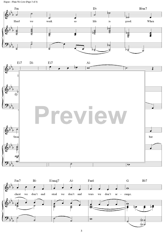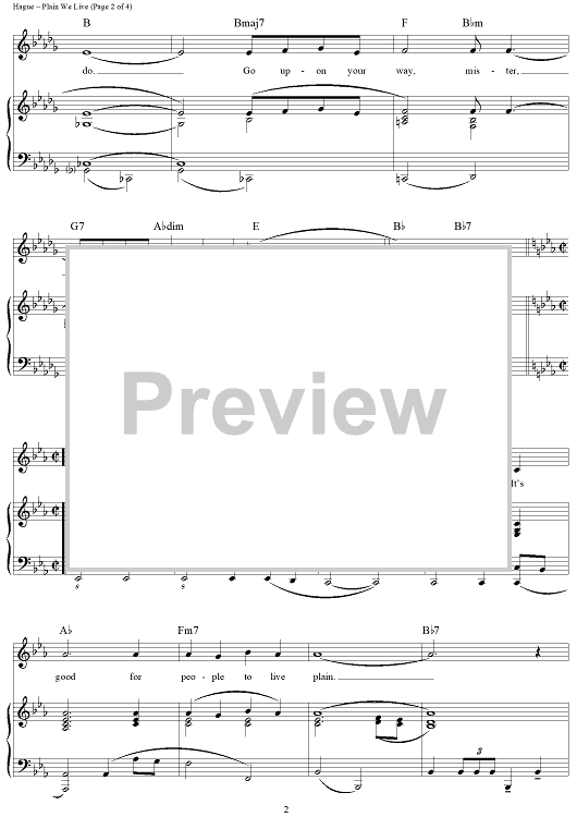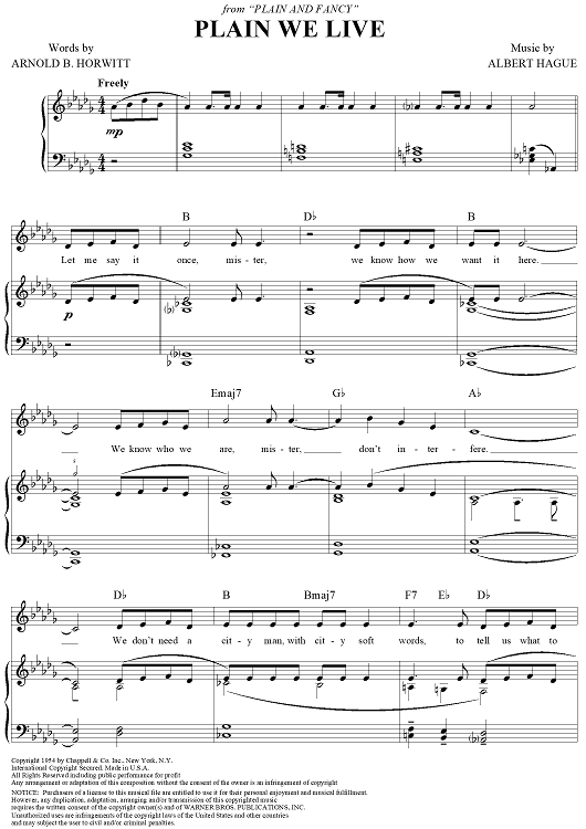 Digital Sheet Music for Plain We Live by Albert Hague, Arnold B. Horwitt scored for Piano/Vocal/Chords; id:356040