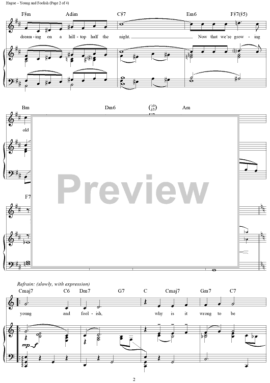 "Young and Foolish" Sheet Music by Albert Hague