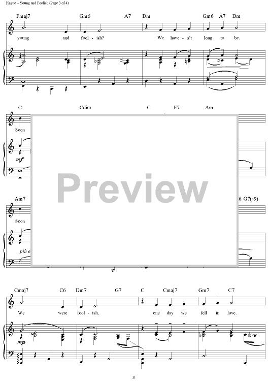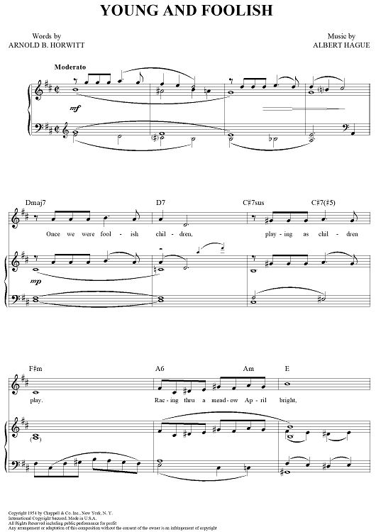 Digital Sheet Music for Young and Foolish by Albert Hague, Arnold B. Horwitt scored for Piano/Vocal/Chords; id:321693