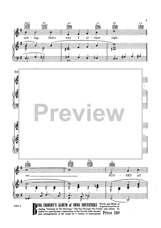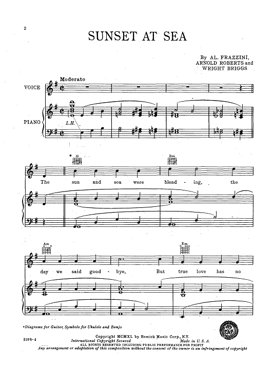 Digital Sheet Music for Sunset At Sea by Arnold Roberts, Wright Briggs, Al Frazzini scored for Piano/Vocal/Chords; id:428404