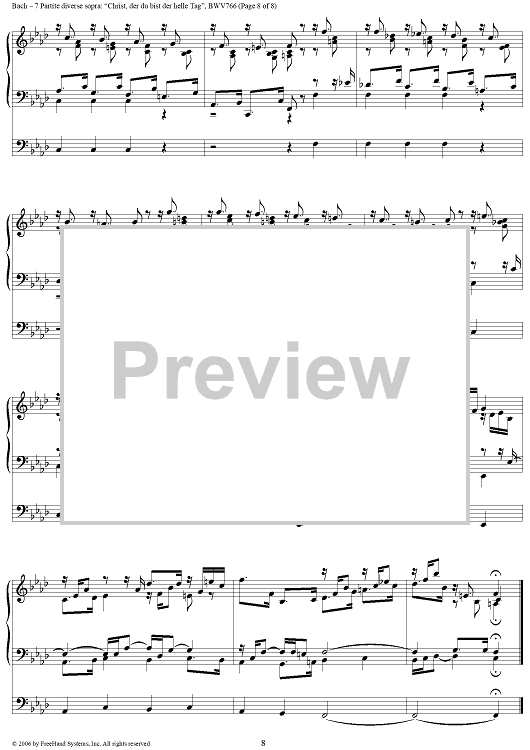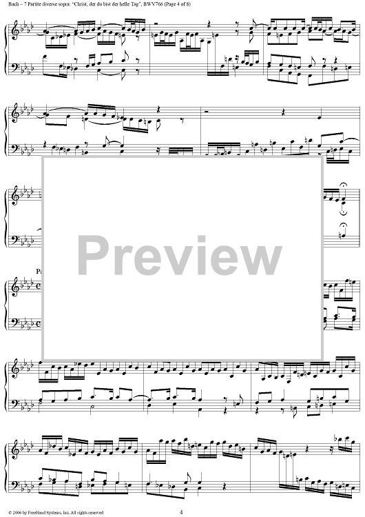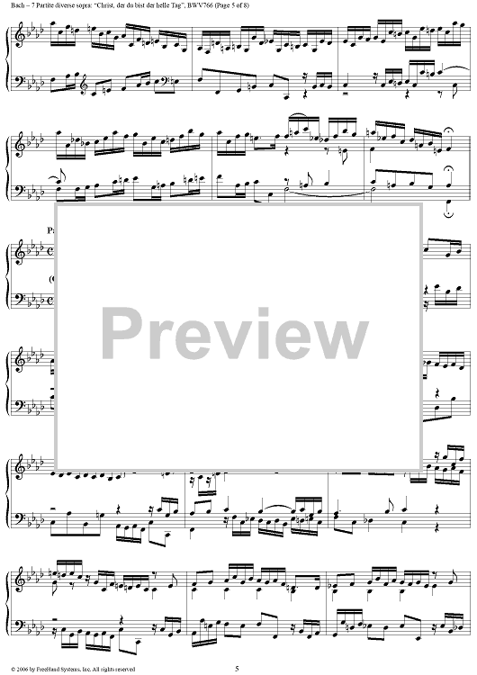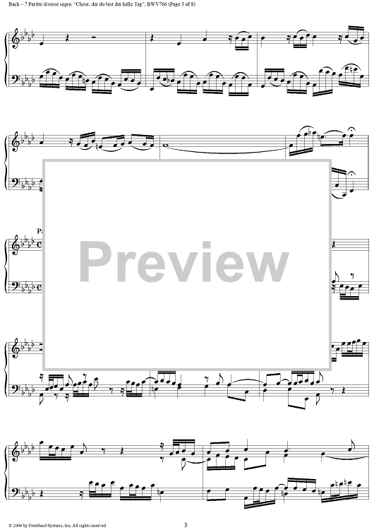 Digital Sheet Music for 7 Partite diverse sopra: Christ, der du bist der helle Tag, BWV766 by Johann Sebastian Bach scored for Organ Solo; id:319360