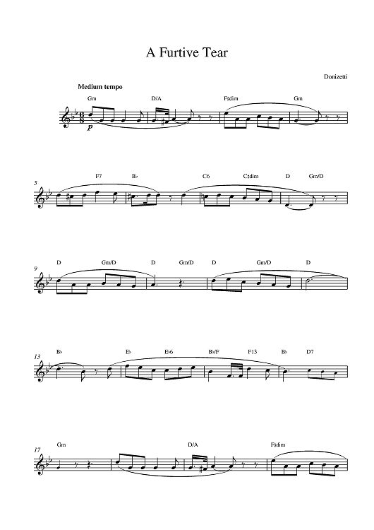 Digital Sheet Music for A Furtive Tear by Gaetano Donizetti scored for Lead Sheet; id:378985