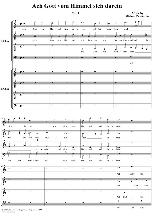 "Ach Gott vom Himmel sich darein" Sheet Music by Michael Praetorius