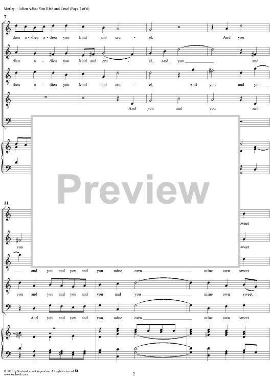 "Adieu Adieu You Kind and Cruel" Sheet Music by Thomas Morley