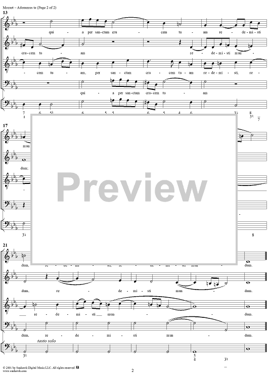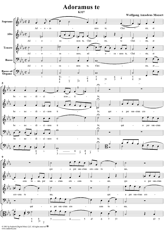 Digital Sheet Music for Adoramus Te, K327 by Wolfgang Amadeus Mozart scored for Four-part Mixed Chorus/Continuo; id:257618
