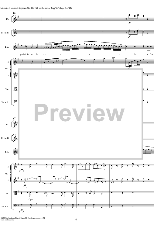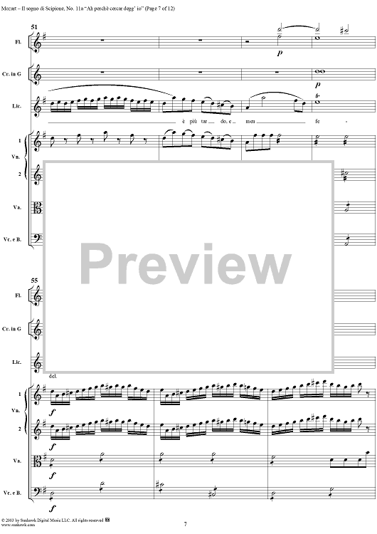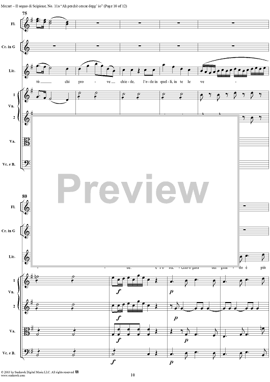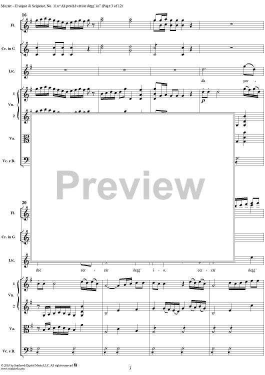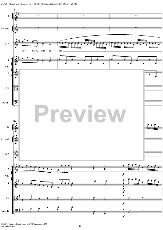 Digital Sheet Music for Ah perchè cercar degg' io (Aria), No. 11a from "Il Sogno di Scipione" - Full Score by Wolfgang Amadeus Mozart scored for Soli/SATB/Orchestra; id:291191
