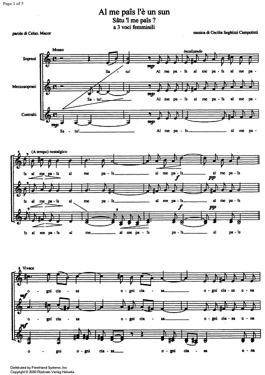 Digital Sheet Music for Al me pais l'é un sun by , Cecilia Seghizzi Campolieti scored for Female Chorus; id:330017