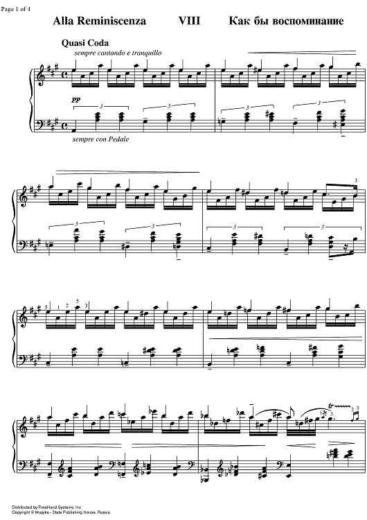 "Alla Reminiscenza - Forgotten Melodies 1, Op.38 No. 8" Sheet Music by Nikolay Karlovich Medtner