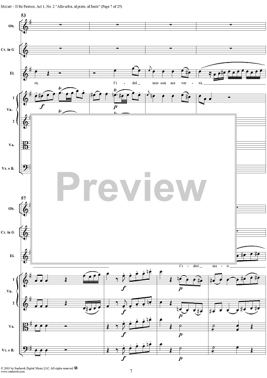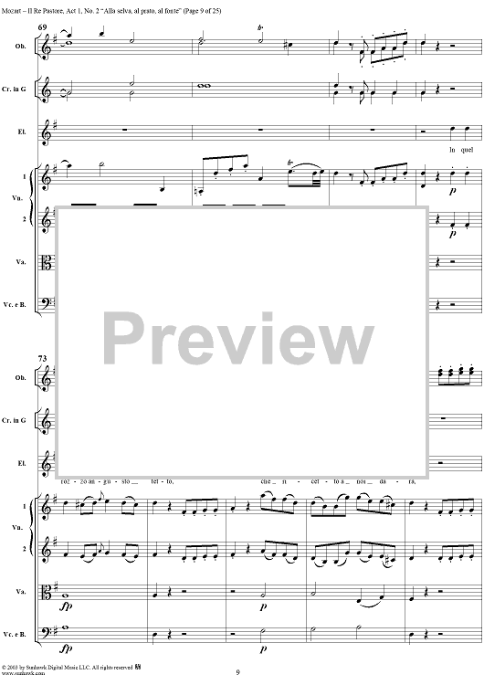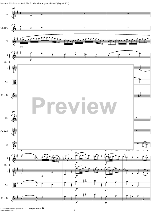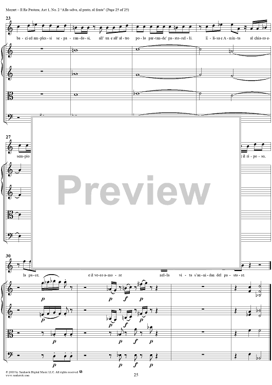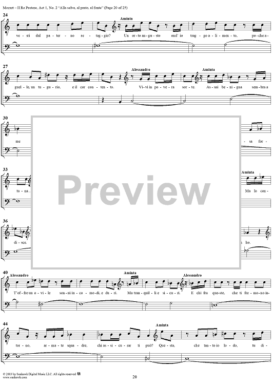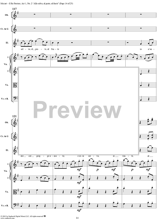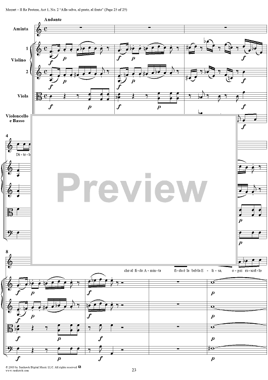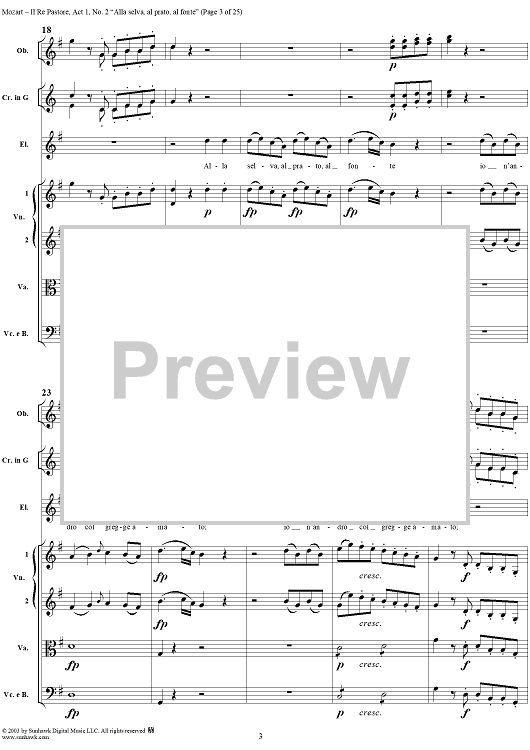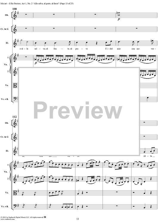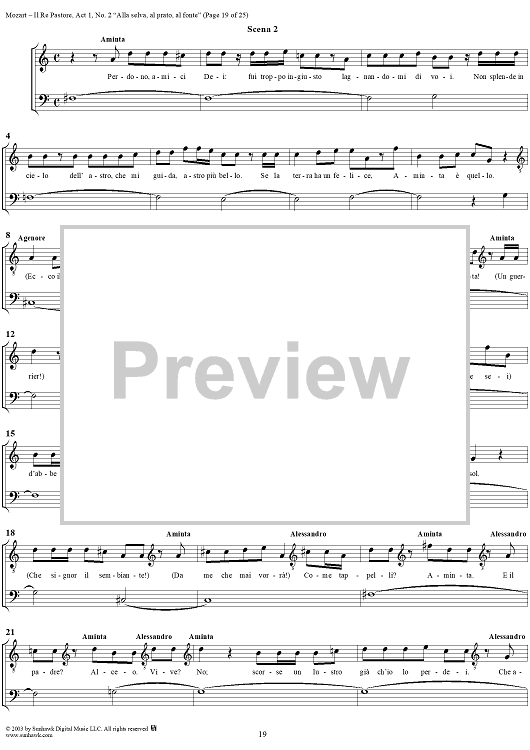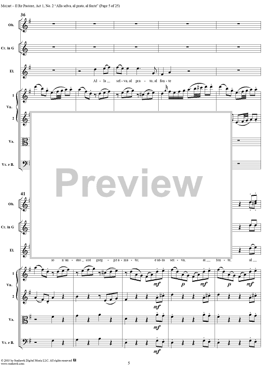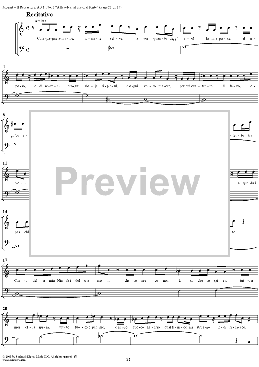 Digital Sheet Music for Alla selva, al prato, al fonte, No. 2 from "Il Re Pastore", Act 1 (K208) - Full Score by Wolfgang Amadeus Mozart scored for Voice and Orchestra; id:291437