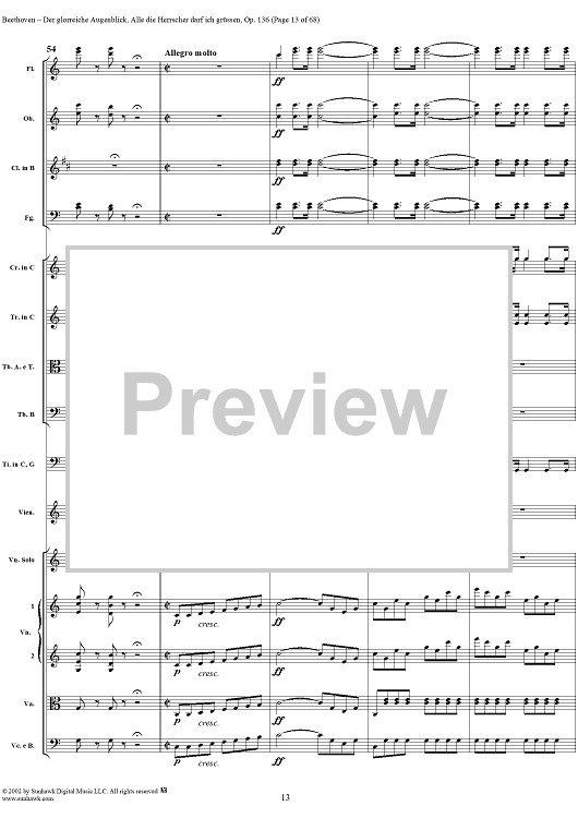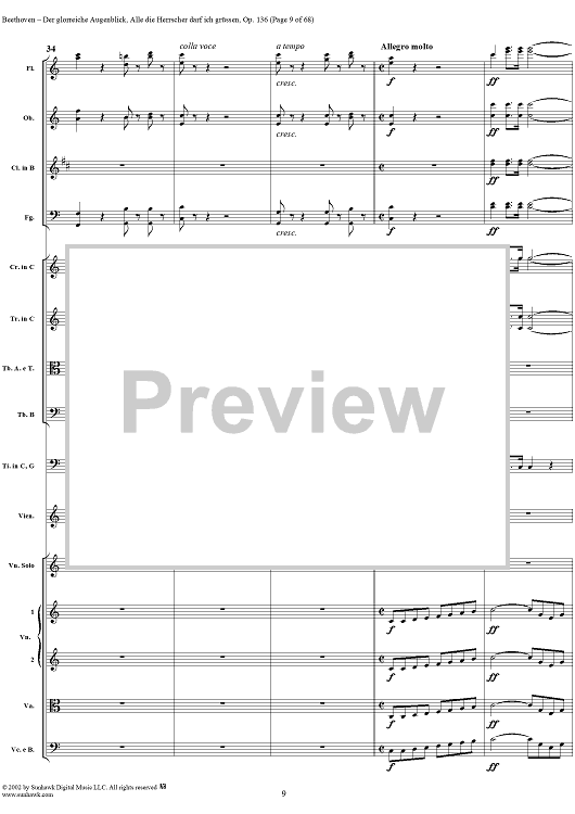 Digital Sheet Music for Alle die Herrscher darf ich grüssen, No. 3 from "Der glorreiche Augenblick", Op. 136 - Full Score by Ludwig van Beethoven scored for Chorus and Orchestra; id:290913