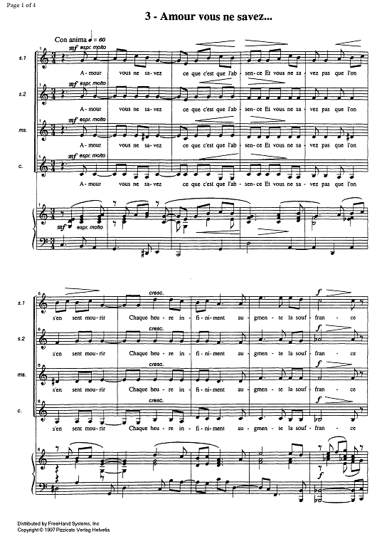 Digital Sheet Music for Amour vous ne savez by , Marco Sofianopulo scored for Female Chorus/Piano; id:330821