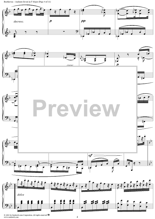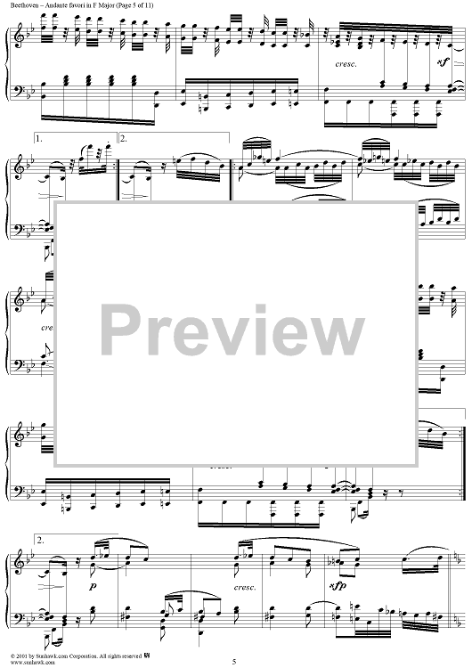Digital Sheet Music for Andante favori in F major by Ludwig van Beethoven scored for Piano Solo; id:275448