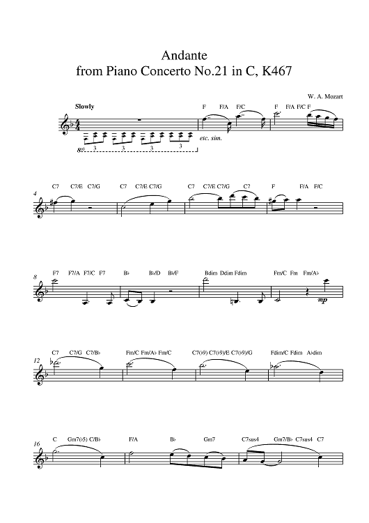 Digital Sheet Music for Andante K467 by Wolfgang Amadeus Mozart scored for Lead Sheet; id:379112
