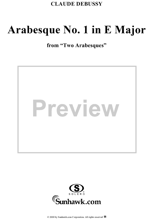 Digital Sheet Music for Arabesque No. 1 in E Major by Claude Debussy scored for Piano Solo; id:272101