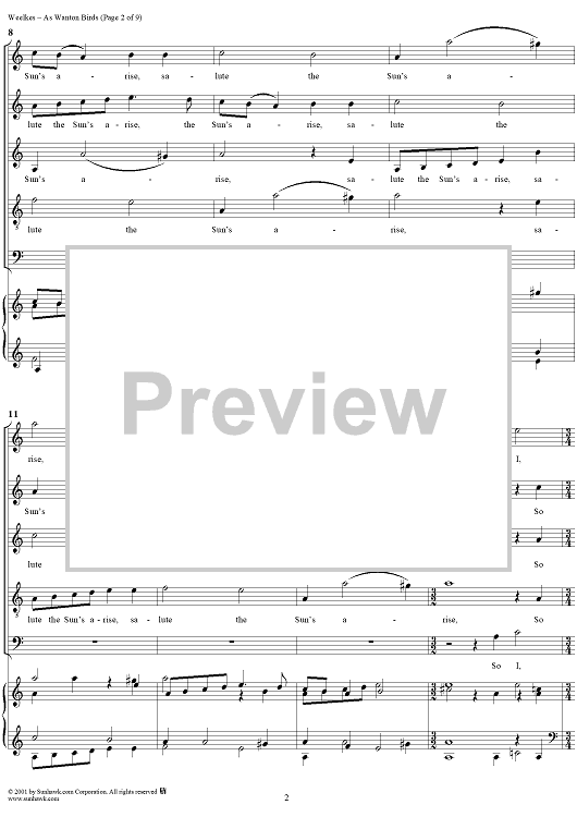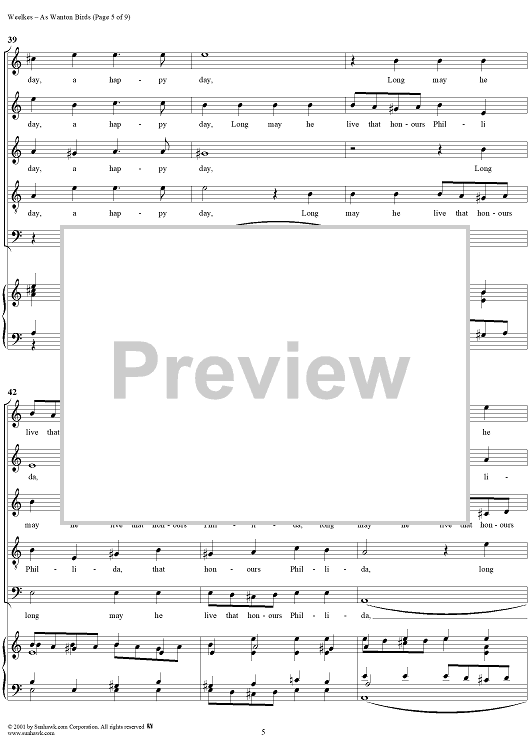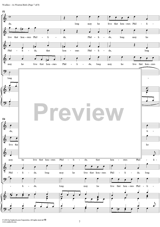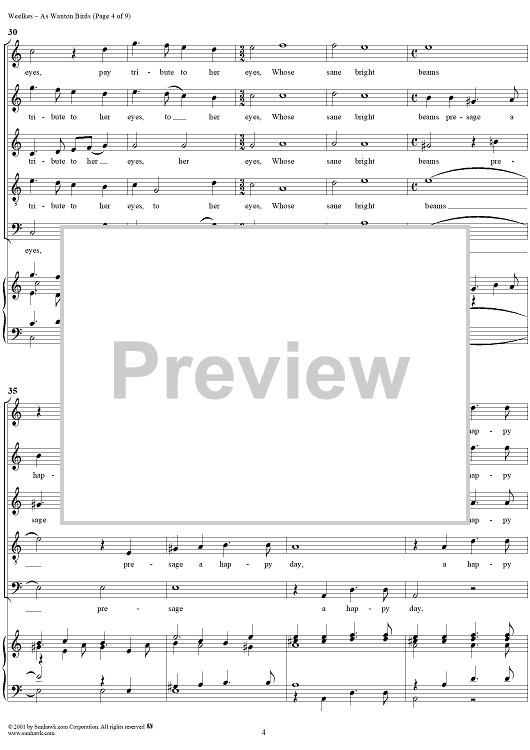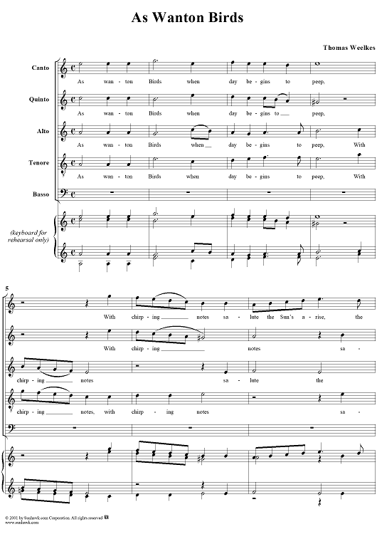 Digital Sheet Music for As Wanton Birds by Thomas Weelkes scored for Five-part Mixed Chorus; id:262303
