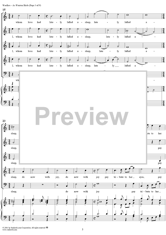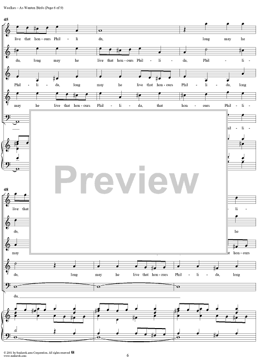 "As Wanton Birds" Sheet Music by Thomas Weelkes