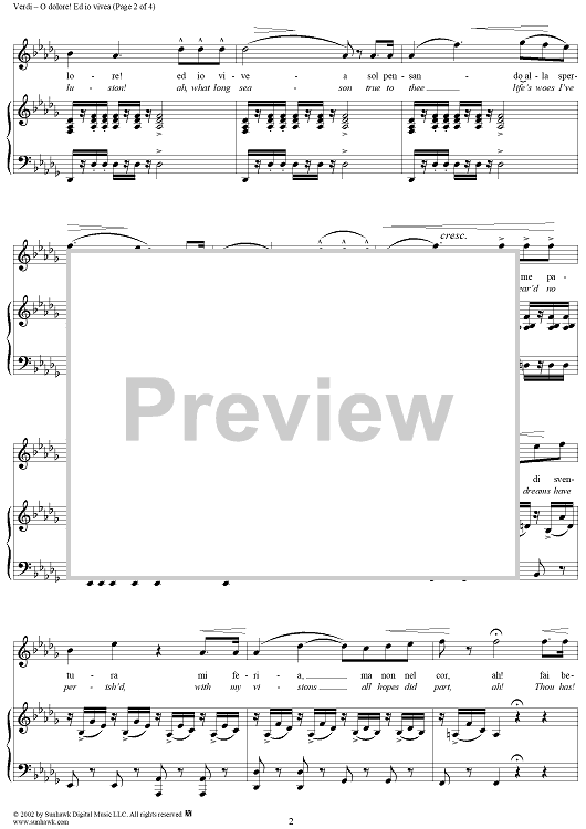 Digital Sheet Music for Attila, "O dolore! Ed io vivea" (Oh delusion!) by Giuseppe Verdi scored for Voice/Piano; id:253716