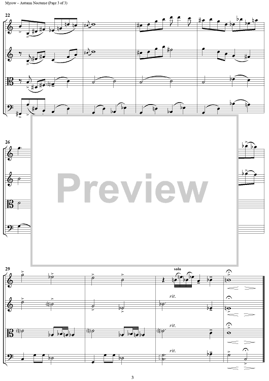 Digital Sheet Music for Autumn Nocturne - Score by Kim Gannon, Josef Myrow, Tony Esposito scored for String Quartet; id:316029