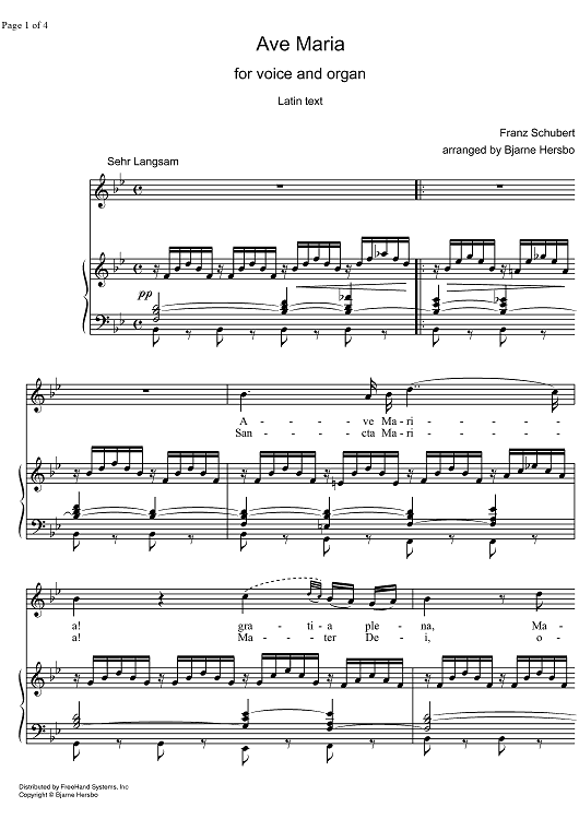 Digital Sheet Music for Ave Maria D839 by , Franz Schubert, Bjarne Hersbo scored for Voice/Organ; id:324006