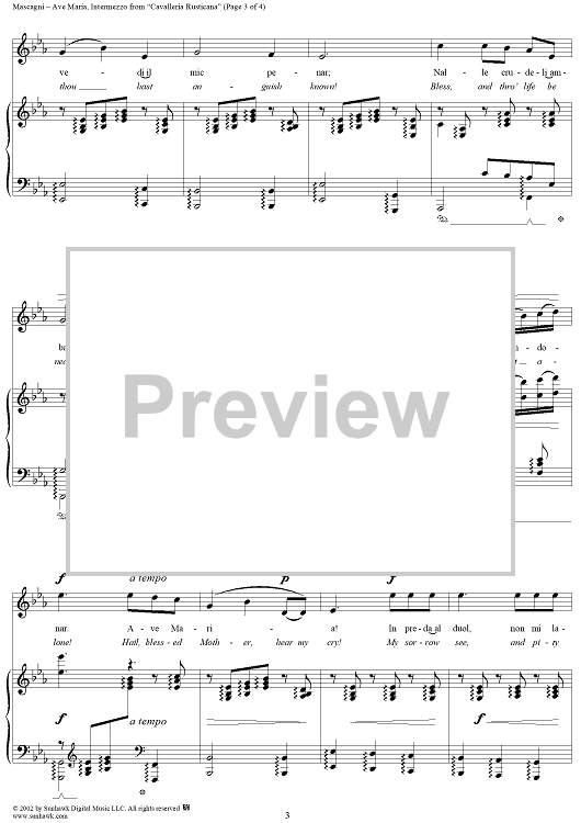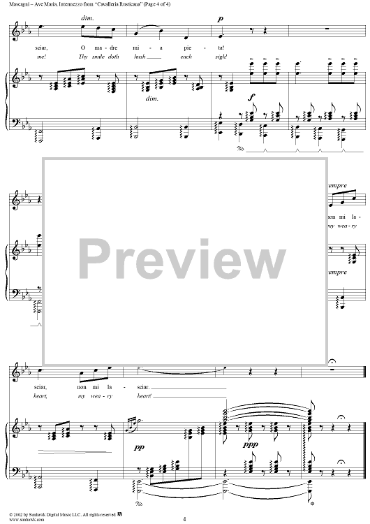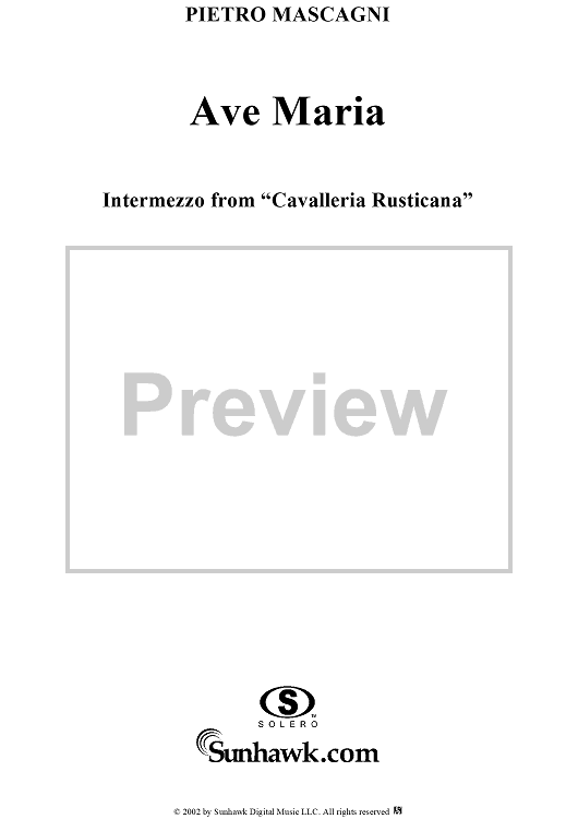 Digital Sheet Music for Ave Maria - Intermezzo from "Cavalleria Rusticana" by Pietro Mascagni scored for Voice/Piano; id:251530