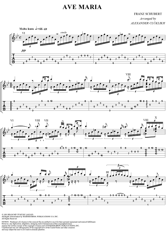 Digital Sheet Music for Ave Maria by Franz Schubert, Alexander Gluklikh scored for Guitar Tab; id:283362