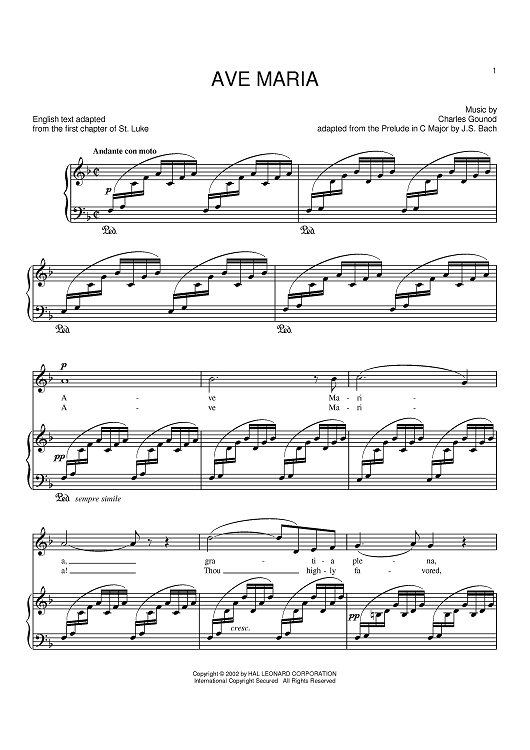 Digital Sheet Music for Ave Maria by Charles Gounod, Johann Sebastian Bach scored for Piano/Vocal/Chords; id:369658