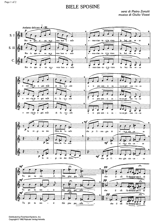 Digital Sheet Music for Biele sposine by , Giulio Viozzi scored for Female Chorus; id:334489