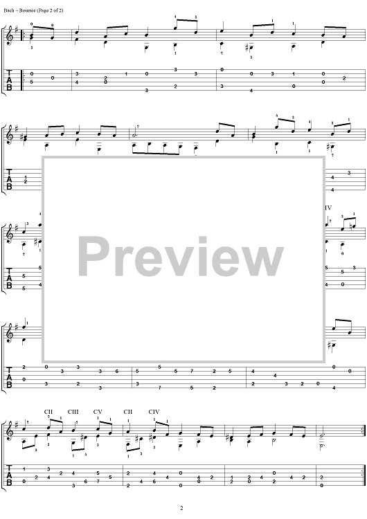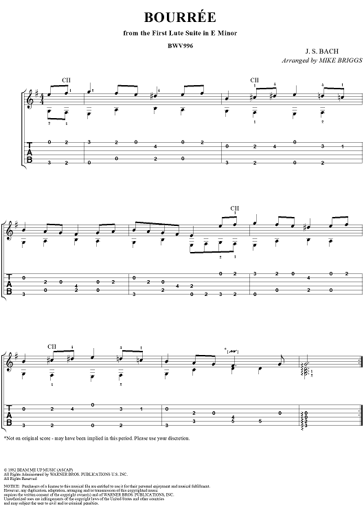 Digital Sheet Music for Bourrée by Mike Briggs, Johann Sebastian Bach scored for Guitar Tab; id:283369
