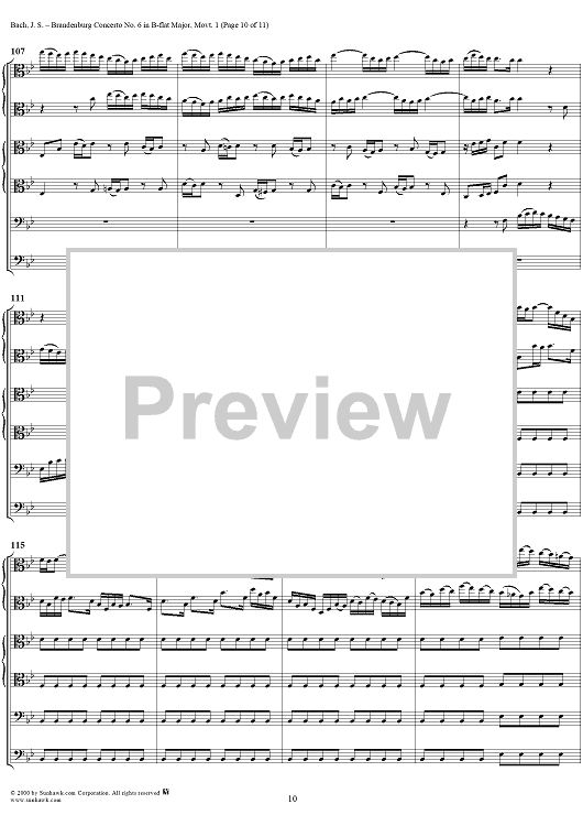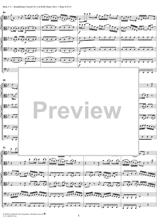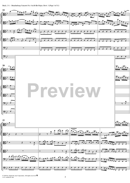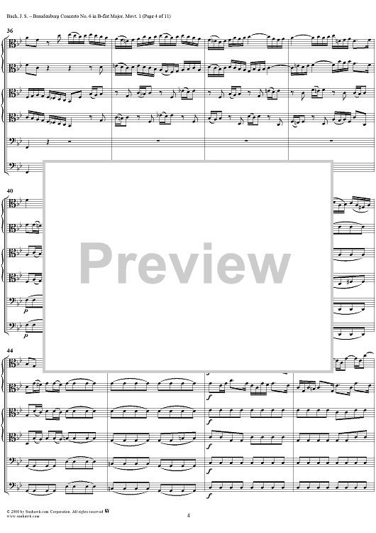 "Brandenburg Concerto No. 6: Movement 1 - Score" Sheet Music by Johann Sebastian Bach
