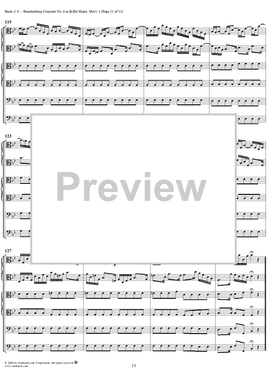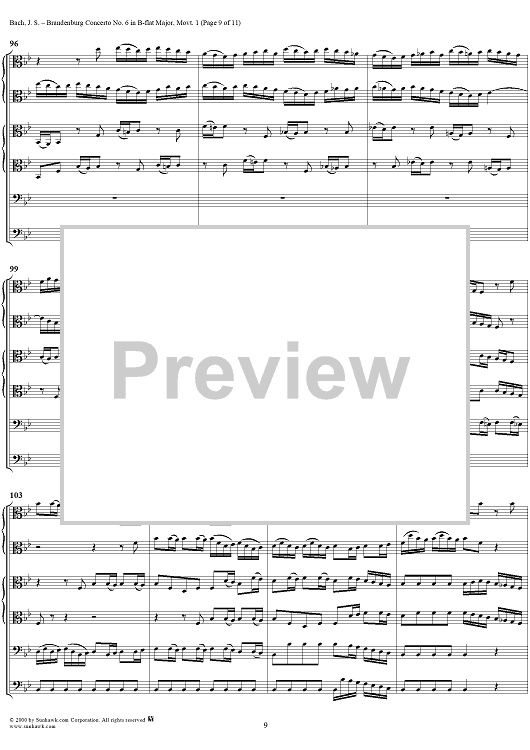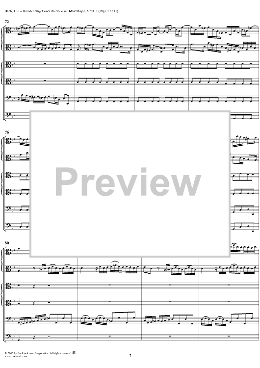 Digital Sheet Music for Brandenburg Concerto No. 6: Movement 1 - Score by Johann Sebastian Bach scored for Chamber Orchestra; id:234752