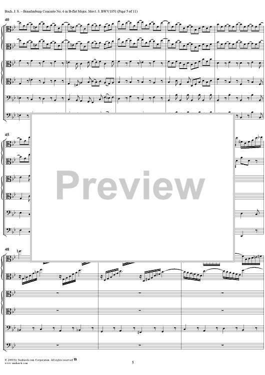 Digital Sheet Music for Brandenburg Concerto No. 6: Movement 3 - Score by Johann Sebastian Bach scored for Chamber Orchestra; id:236457