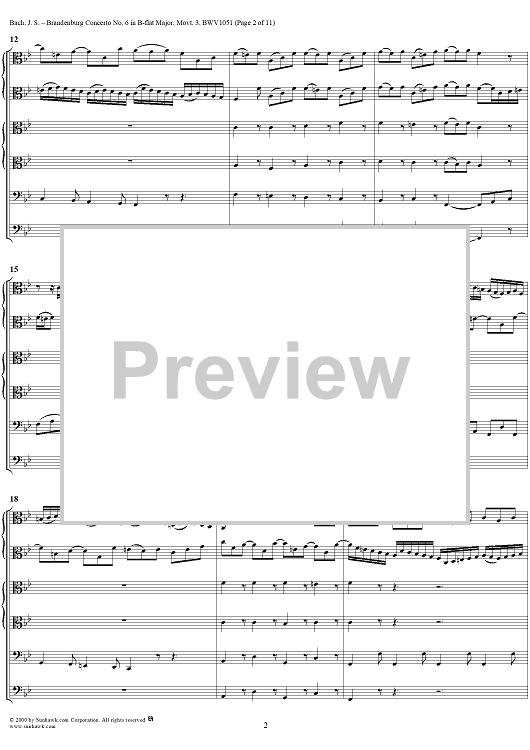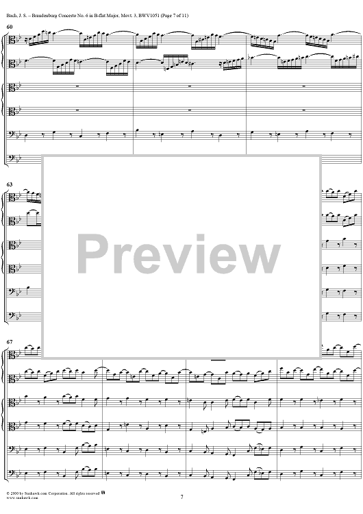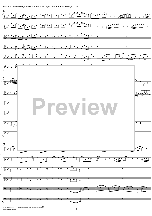 "Brandenburg Concerto No. 6: Movement 3 - Score" Sheet Music by Johann Sebastian Bach