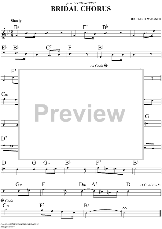 Digital Sheet Music for Bridal Chorus (from "Lohengrin") by Richard Wagner scored for Lead Sheet; id:116497