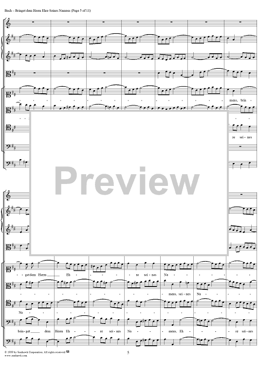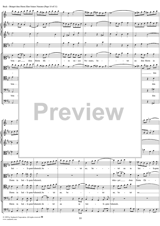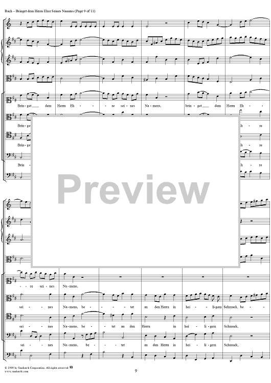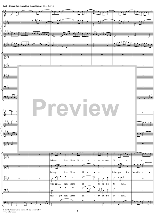 Digital Sheet Music for Bringet dem Herrn Ehre Seines Namens, BWV148 by Johann Sebastian Bach scored for Full Score; id:267456