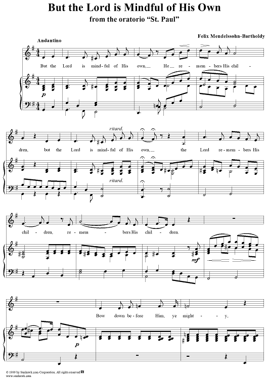 Digital Sheet Music for But the Lord is Mindful of His Own - From "St. Paul" by Felix Mendelssohn scored for Four-part Mixed Chorus; id:263256