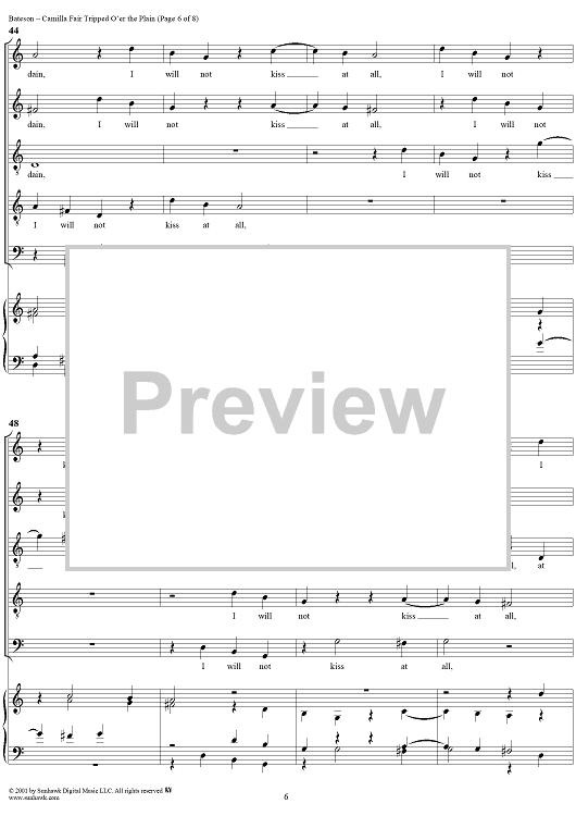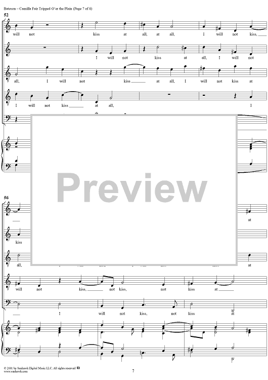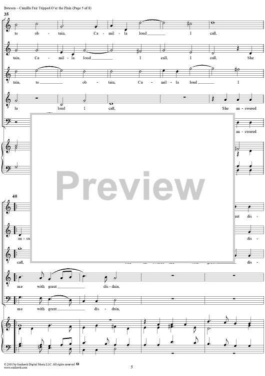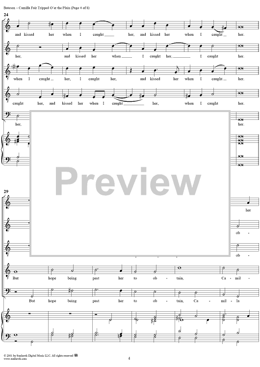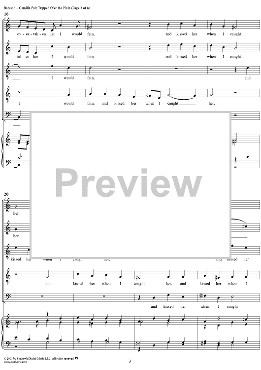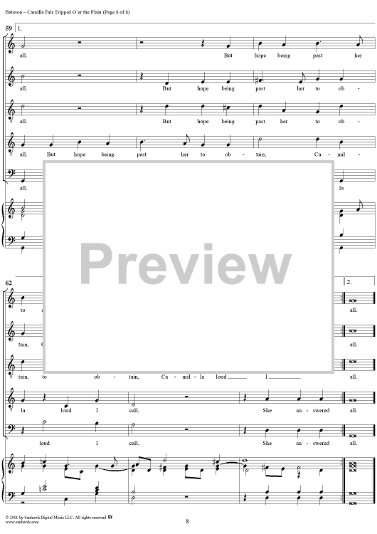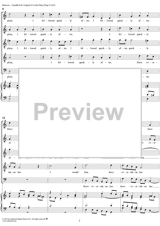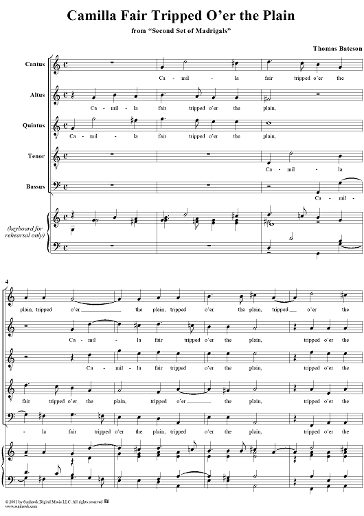 Digital Sheet Music for Camilla Fair Tripped O'er the Plain by Thomas Bateson scored for Mixed Chorus; id:259554