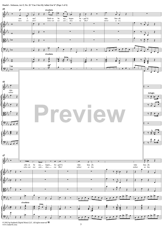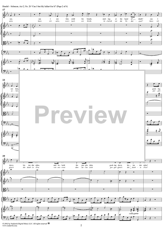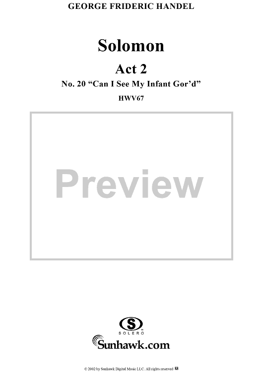 Digital Sheet Music for Can I see my infant gor'd, No. 20 from Oratorio "Solomon", Act 2 (HWV67) by George Frideric Handel scored for Soli/SATB/Orchestra; id:290385