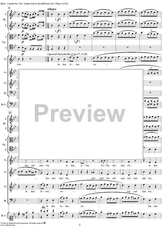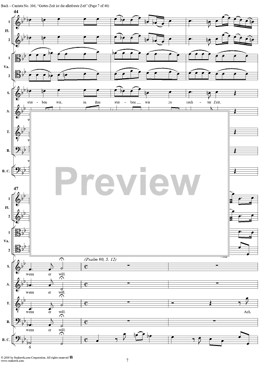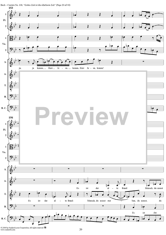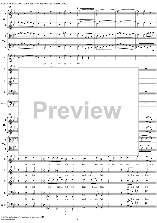 Digital Sheet Music for Cantata No. 106: "Gottes Zeit ist die allerbeste Zeit," BWV106 by Johann Sebastian Bach scored for Full Score; id:276630