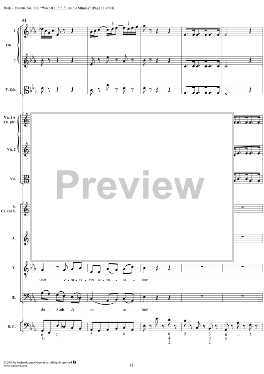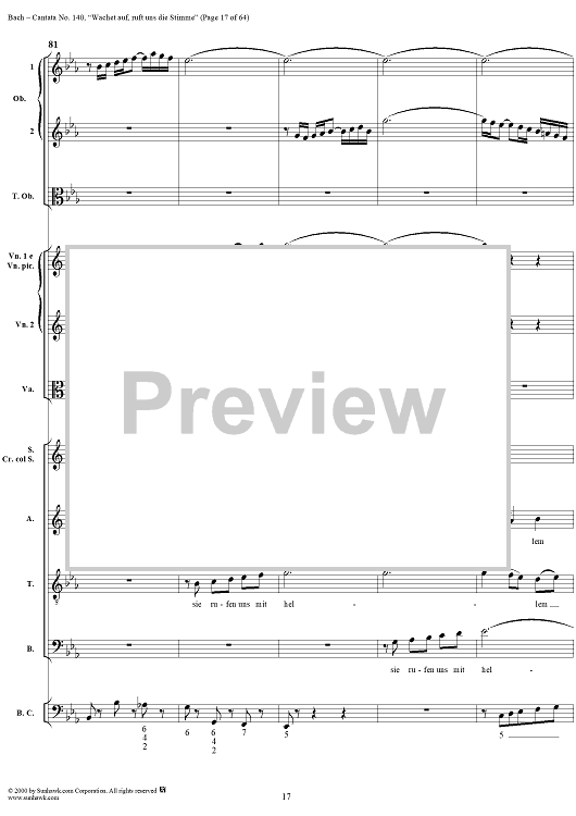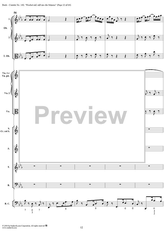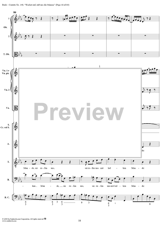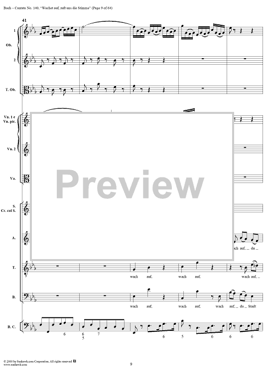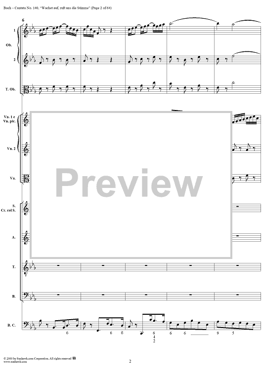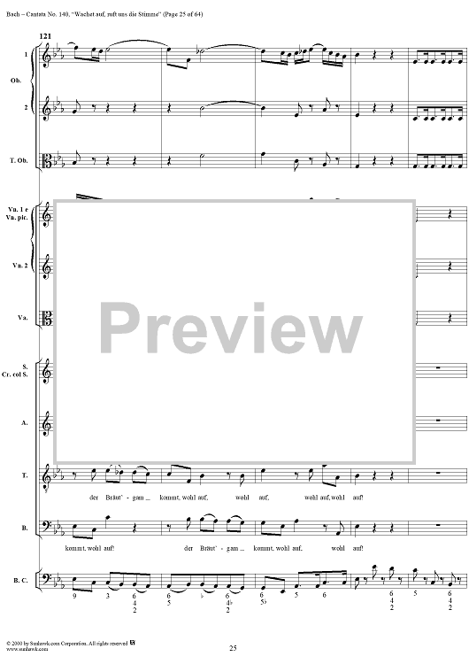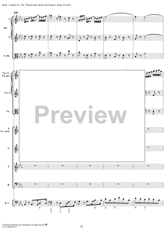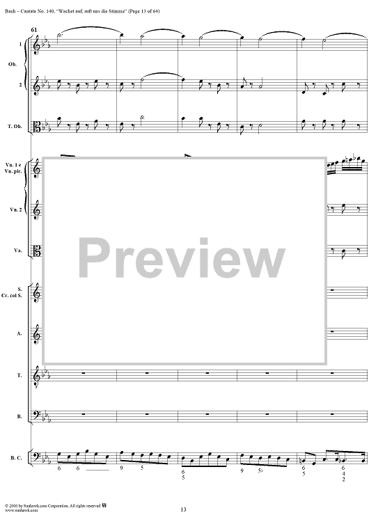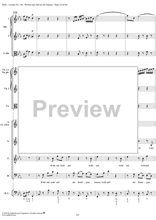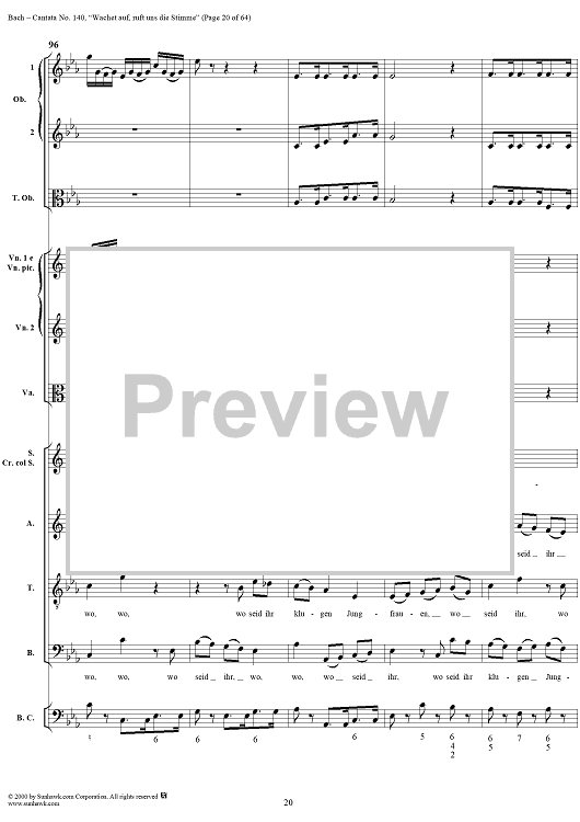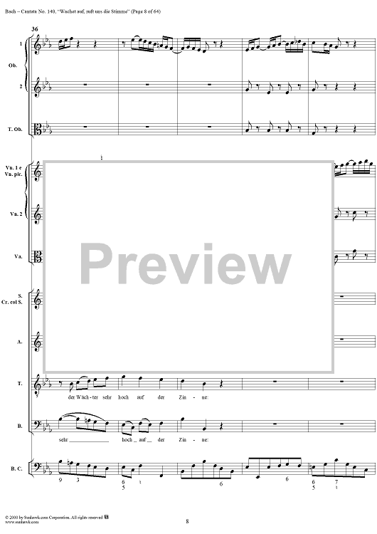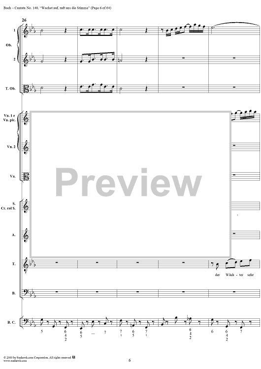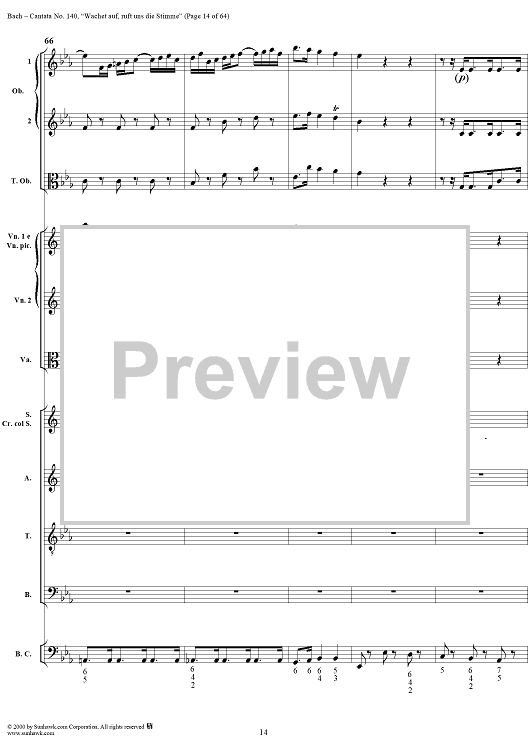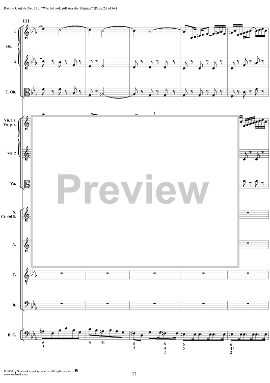 Digital Sheet Music for Cantata No. 140: "Wachet auf, ruft uns die Stimme," BWV140 - Full Score by Johann Sebastian Bach scored for Violin/Viola/Bass/Continuo; id:235944