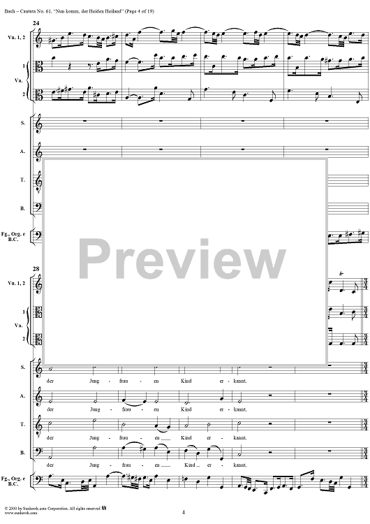 Digital Sheet Music for Cantata No. 61: "Nun komm, der Heiden Heiland," BWV61 by Johann Sebastian Bach scored for Full Score; id:241159